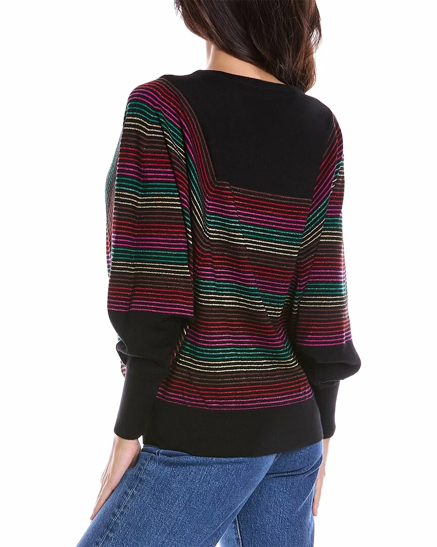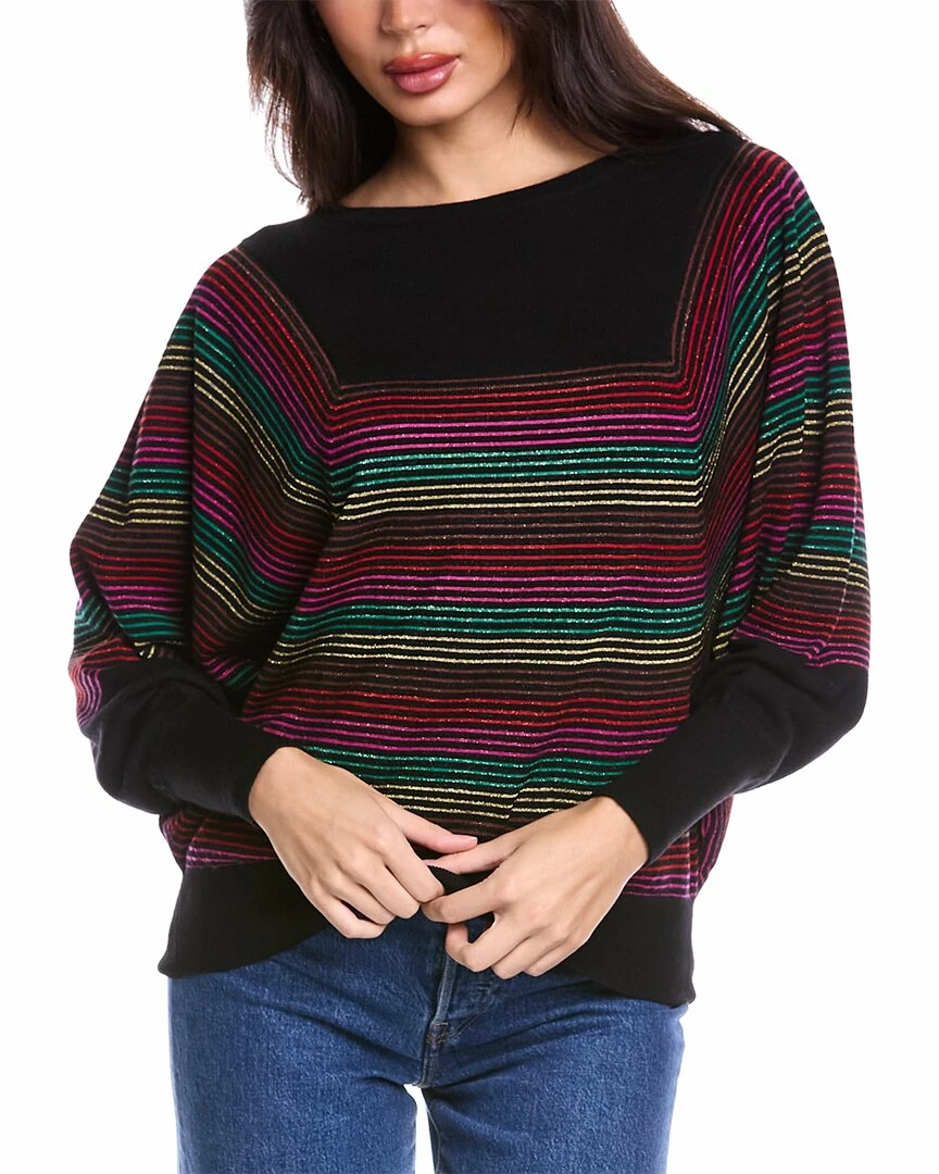 - Carraway Wool-Blend Sweater in black multicolor with boat neck, dolman sleeves and banded hem