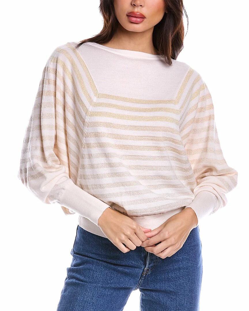 - Carraway Wool-Blend Sweater in ecru/gold with boat neck, dolman sleeves and banded hem