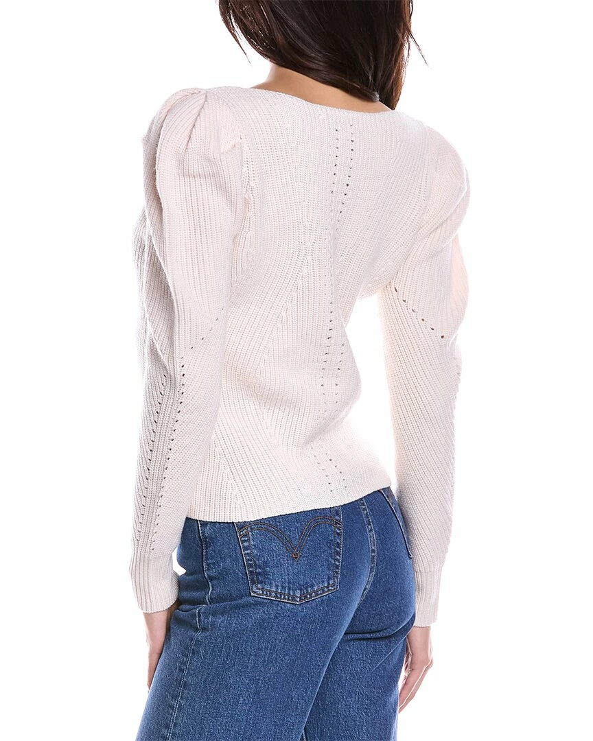 - Dalhart Wool Sweater in ecru with ribbed knit and puff sleeves
