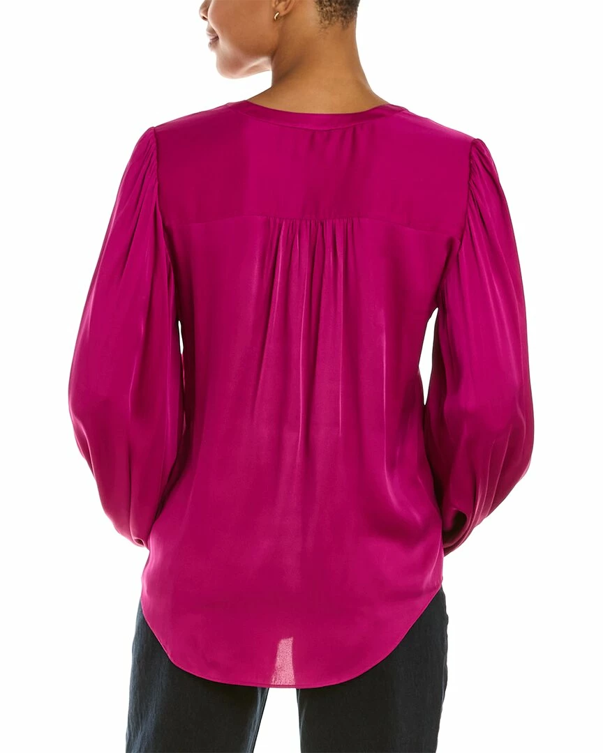 - Devilline Silk-Blend Top in tickled pink with split neck and blouson sleeves