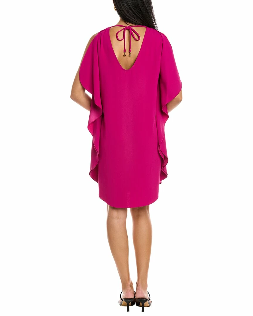 - Haipo Midi Dress in tickled pink with front and back V, split cape sleeves, and draped side detail