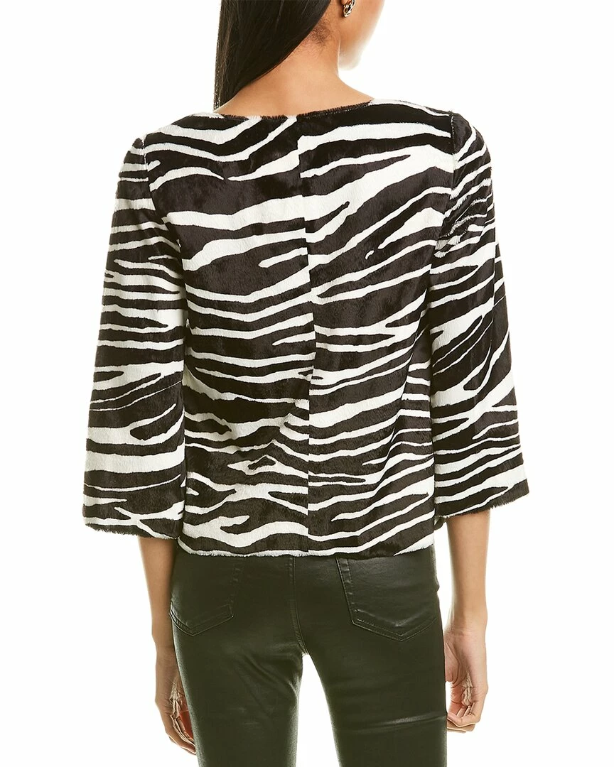 - Hiroka Top in black & whitewash with faux fur design and V-neck