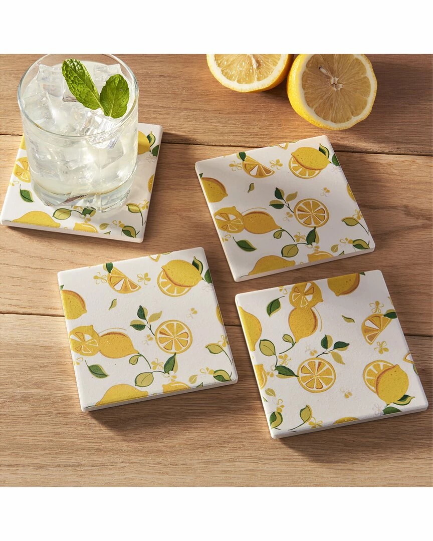 - Design details: avoid that awkward moment when guests place a glass dripping with water beads on your treasured coffee table, forcing you to run for a paper napkin. how? by keeping a set of stylish drink coasters from trina turk lemons set of 4 ceramic coasters 4.25”d handy! versatile and functional, these beverage coasters prevent water rings from ruining your furniture and a social faux pas from marring your friendship.