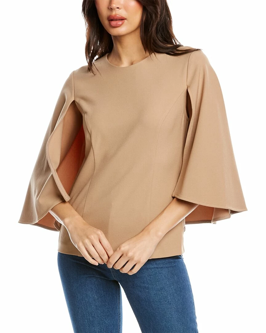 - Recess Top in camel with 3/4-length capelet sleeves