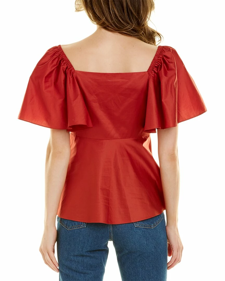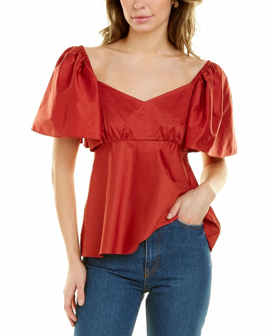 - Sagan Top in lobster with oversized flutter sleeves and high peplum waist