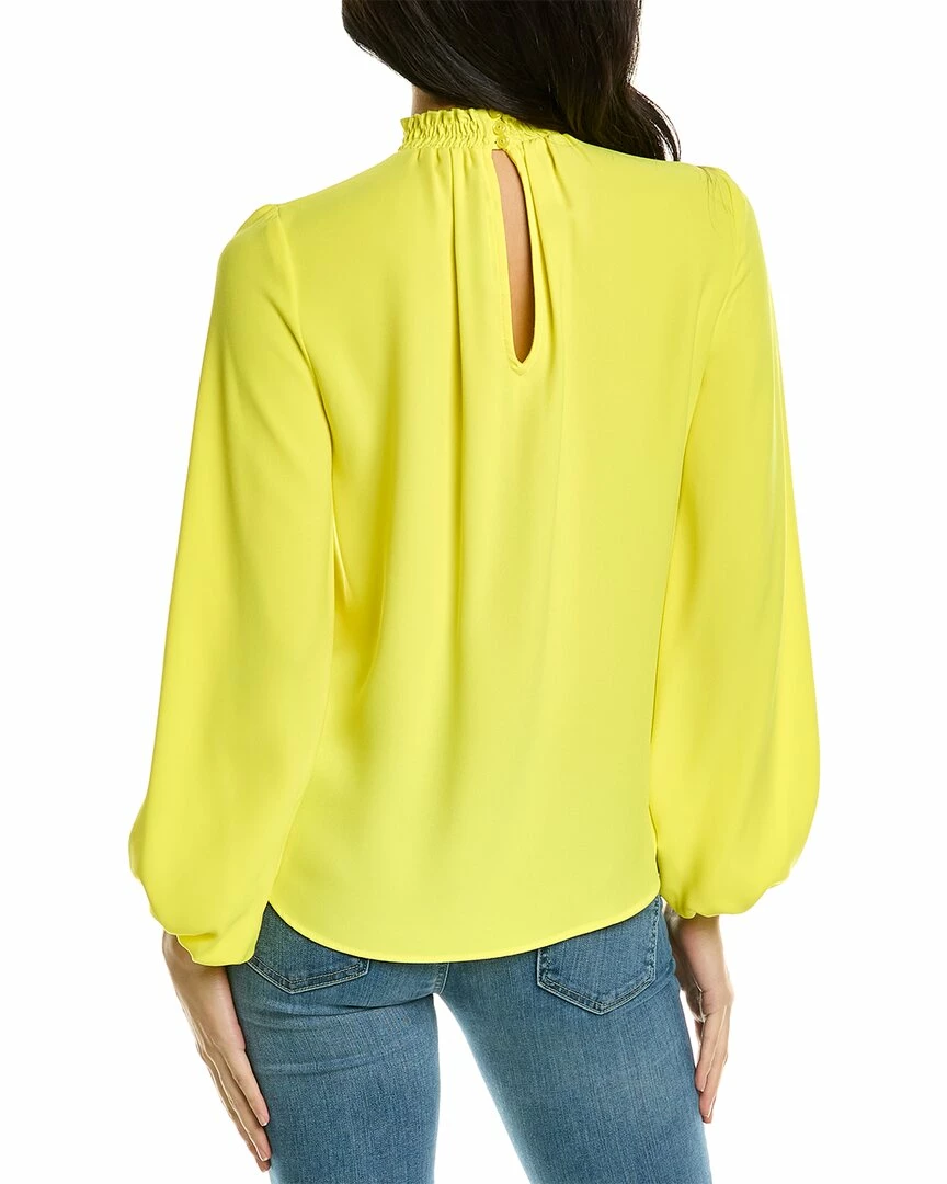 - Sunrise Vista Top in citron with smocked mock neck and blouson sleeves