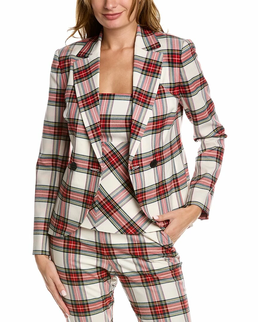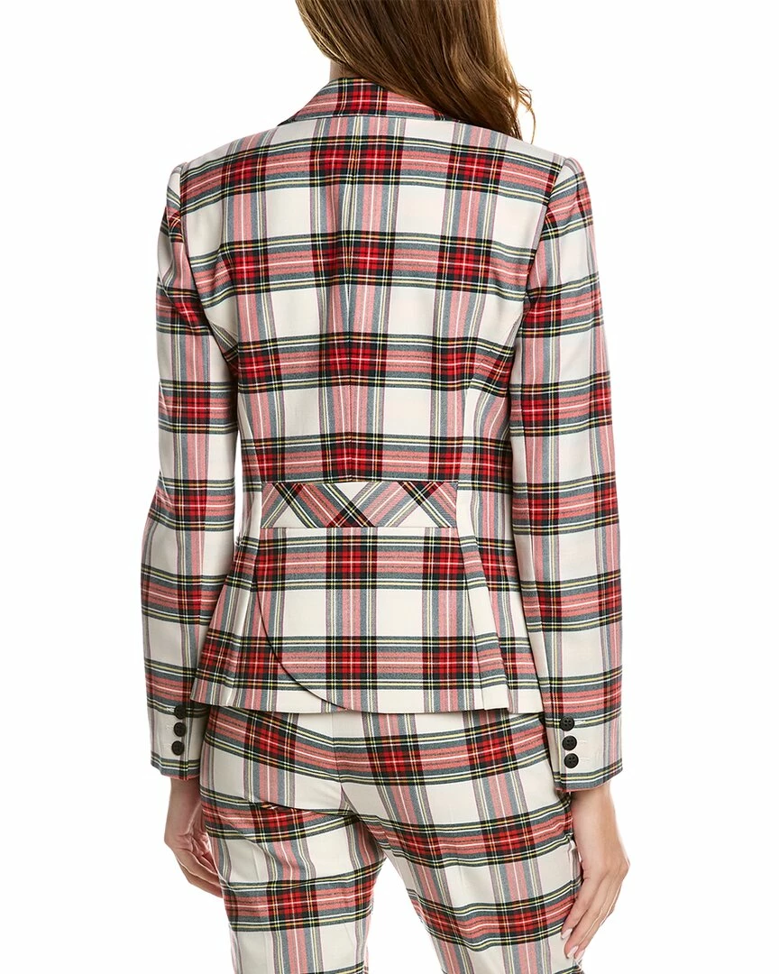 - Swizzle Blazer in holiday tartan multicolor with notch lapel, tulip back hem, and buttons at cuffs