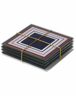 Best Pirce ๐ Trina Turk Cheers To You Gold Set Of 4 Glass Coaster Set Home Drinkware โญ